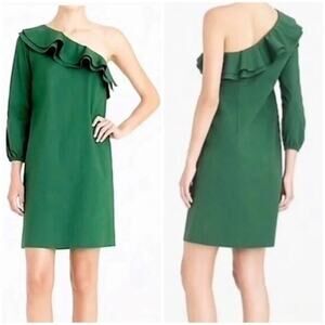 J. Crew Green Cotton Blend One Shoulder Long Sleeve Poplin Ruffle Dress