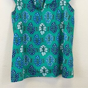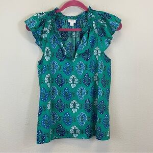 J. Crew Green Floral Flutter Sleeves Split Neck Cotton Blouse Size Small SP2025