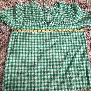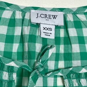 J. Crew Green Gingham Women's Top XXS Tie Neck Smocked Cotton Woven Casual Chic