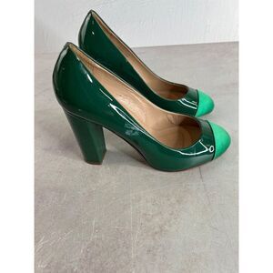 J Crew Green Patent Leather Platform Heels Mint Toe Cap Christmas Party