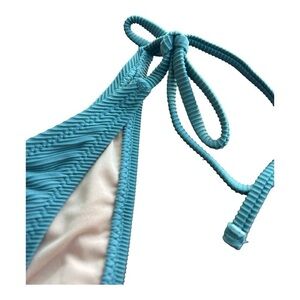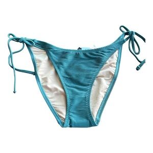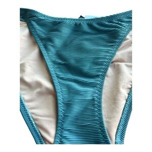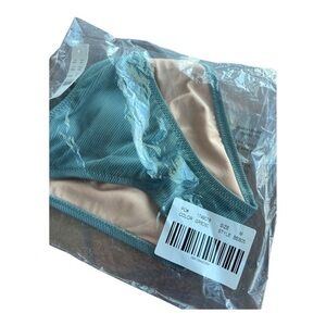 J Crew Green Ribbed Curved Waist Cheeky String Bikini Bottom Size Medium NWT