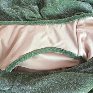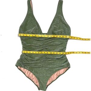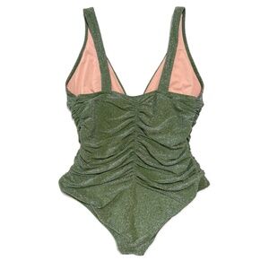 J. Crew Green Sparkle Ruched Plunge One-Piece Swimsuit Size 18