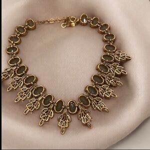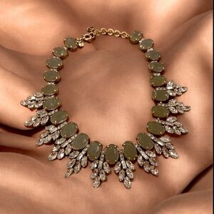 J. Crew Green Stone and Rhinestones Etruscan Style Statement Bib Necklace