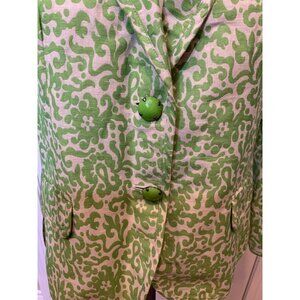 J. Crew Green Tan Floral Embroidered Linen Blazer, Size 10