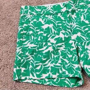 J. Crew Green Tropical Print Basketweave 5” Casual Cotton Shorts. Size 2. Please see photos for measurement and material content. Excellent Pre-Owned Condition.