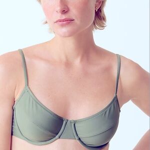 J Crew Green Underwire Swim Top with Adjustable Straps NWT 32C