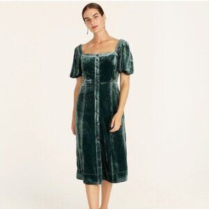 J Crew Green Velvet Midi Dress