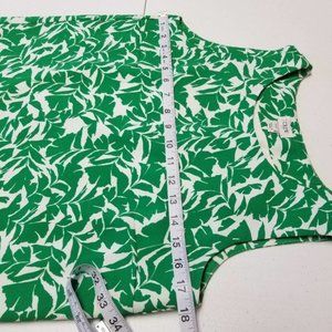J. Crew Green & White Leaf Pattern Sleeveless Lined Drape Split Back Excellent!