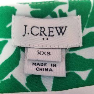 J. Crew Green White Leaf Pattern Scallop Hem Lined Drape Split Back Top XXS