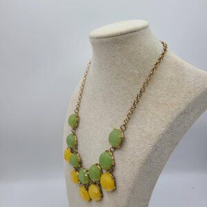 J Crew Green Yellow Gold Tone Stone Statement Necklace