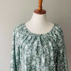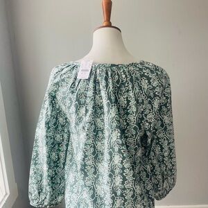 J. Crew Green and Ivory Scoop Neck Popover Top NWT