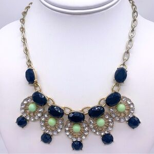 J. Crew Green and Navy Jeweled Necklace. Measures 20”, which includes 3” extender.