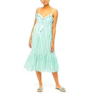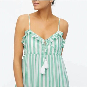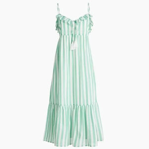 J. Crew Green and white stripe tiered Ruffle Maxi Dress