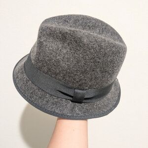 J. Crew Grey 100% Wool Ribbon Fedora Hat.