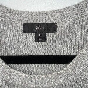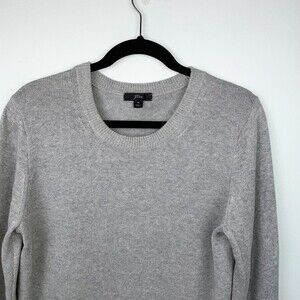 J. Crew Grey Ruffle Long Sleeve Pullover Sweater Cotton Crewneck Knit Women's M