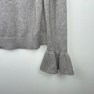 Adorable J. Crew gray pullover sweater with long ruffle bell sleeves. Crewneck, tight yet lighter weight 100% cotton knit, classic soft grey color. Excellent used condition, no flaws. Women's size medium, approximate measurements: pit to pit 19.5"; length 23"; sleeve 26.5".