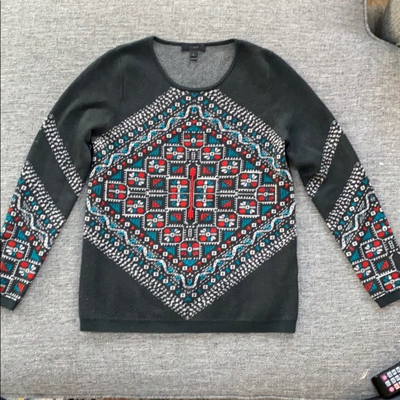 Beautiful J. Crew grey sweater with Nordic front design and embroidery. Great condition other than slight pilling from normal wear. Size small.