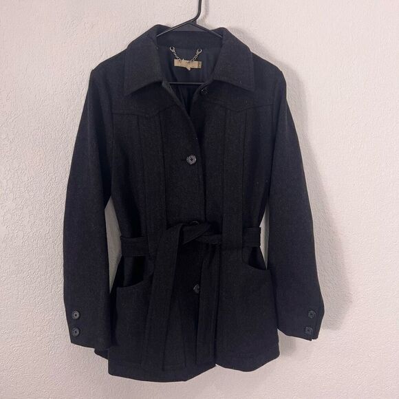 Great pre-owned condition J. Crew Grey Wool Collared Button Down & Belted Dress Coat