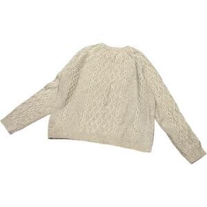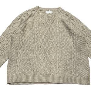 J Crew HRTHR Khaki Donegal Cable Knit Crew Neck Sweater Fisherman Womens Sz L