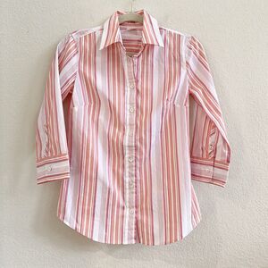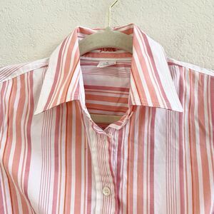 J Crew Haberdashery Women Size XS Classic Pink White Stripe Button Up Shirt