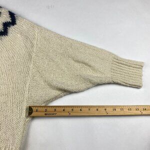 Soft cream sweater features zipped/collared neckline, slightly oversized fit, batwing sleeves.