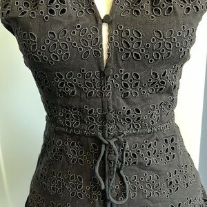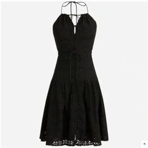 J Crew Halter Mini Dress in Eyelet Black Linen Blend