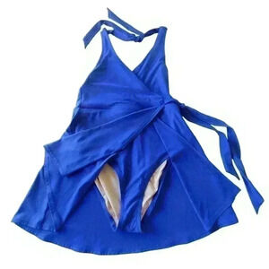 J Crew Halter Wrap Swim Dress Modest Royal Blue Womens Size 4