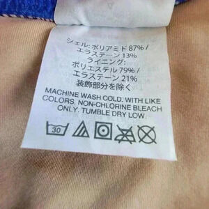 This J.CREW swimdress features a halter style top and solid blue color, perfect for a royal-themed beach day. The dress is made of polyamide material and can be easily machine-washed for care.
