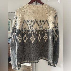 J. Crew Hand Knit 100% Wool Chunky Sweater. Fair isle design in cream, gray and blue colors. Size Medium. New without tags.