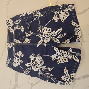 J. Crew Hawaiian Floral Board Shorts Navy White 9" Size 30 Mens Swimtrunks