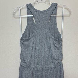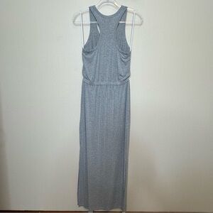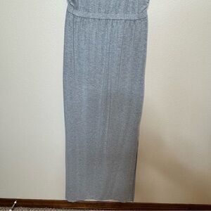 Chic heather gray maxi dress. Sleeveless design. Perfect for versatile styling. Soft comfy fabric with elastic waistband, side slits on both sides. Size small