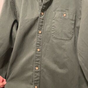 Stylish green button-up shirt with a classic design. Features a chest pocket and button details.