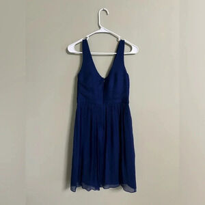 J. Crew Heidi Blue 100% Silk Chiffon A-Line V Neck Dress Size 4