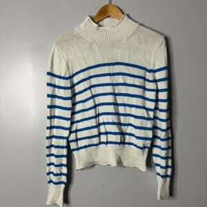 J. Crew Heritage Roll Neck Sweater Stripe Women's Small Blue White Preppy Chic