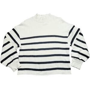 J. Crew Heritage Terry Mockneck Sweatshirt Kate Placed Stripe Black White Medium