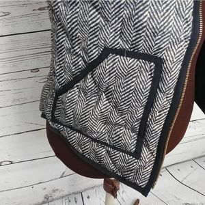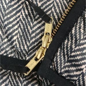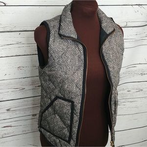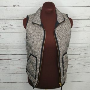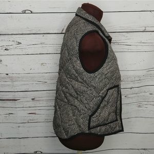 Gently used J. Crew Excursion quilted puffer vest with a black and cream herringbone pattern. Double zipper. Pockets with buttons. Size XXS. Approx 17 inches pit to pit.