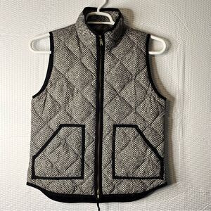 J Crew Herringbone Quilted Down Puffer Vest Full Double Zip Vest Size S