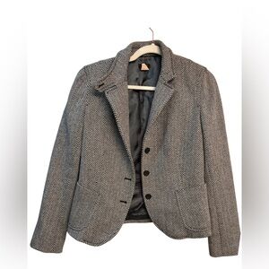 J Crew Herringbone Tweed Wool Slim Blazer Academia Black White Lovely Classic M