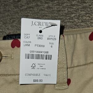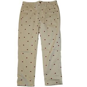 J. Crew High Rise Cream Pants with Red Heart Pattern
