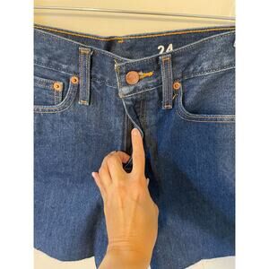 J. Crew Long Cut Off Denim Jean Dark Blue Wash Size 26 NEW