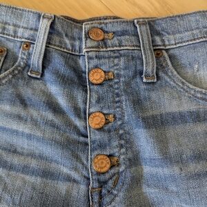 J. Crew High Rise Short Denim Button Fly Distressed Raw Hem 4" Inseam