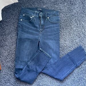 Excellent used condition J Crew jeans. 10” high rise Toothpick style in a dark navy color. Size 25.