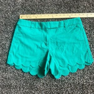 J. Crew High Waist Green Shorts with Scalloped Hem