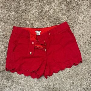 Stylish high waist shorts with scalloped hem. Vibrant red color. Ideal for casual wear.