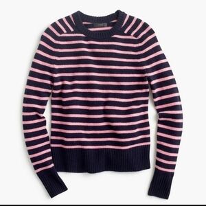 J. Crew Holly Wool Sweater. Womens size medium. Preowned in good used condition. A classic J.crew silhouette that we resurrected from the archives and updated in this classic stripe pattern. Lambswool. Navy blue and pink. Measurments while flat and approximate.