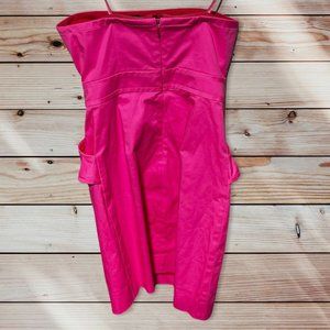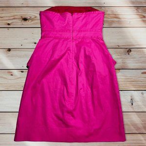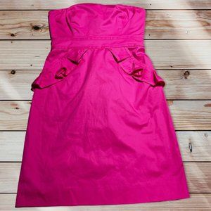 GORGEOUS strapless dress from J. Crew! Hot pink, mini length and tailed to fit like a gove. Has a built in bra on inside. Zip up back. Ruffle details on pockets. POCKETS! Can be anything from party dress to date night to prom to bridesmaid. The color is a really pretty shade of hot pink ( a little less neon than it looks here under the florescent lights) with a coral colored liner on the inside. No rips, stains, or tears. No cosmetic damage.