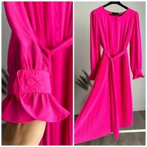 J Crew Hot Pink Pleated Midi Dress 4