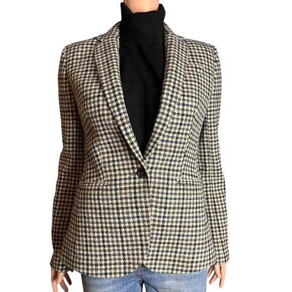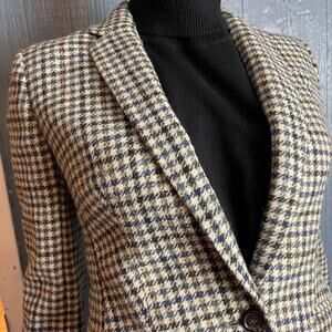 J. Crew Houndstooth Blazer Moon England Luxury Wool Suede Elbow Patches Preppy