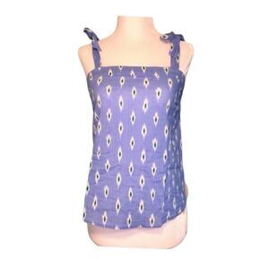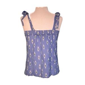 J. Crew Ikat Print Tie Shoulder Top Blue White Chambray Sleeveless XXS