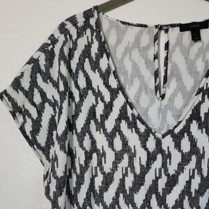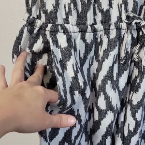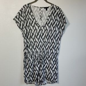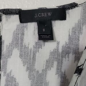 J Crew Ikat Romper Size S Tie Waist Linen V Neck Short Sleeve White Black Print